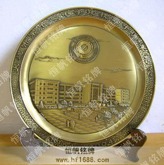 高檔獎盤,有(各種錫制,塑料材料)底座,中間襄貼精致鍍金獎盤,中間貼精美獎牌(有銅或不銹鋼、鈦金、沙金、沙銀、堆金、木制、石材等),整個木制外殼可以折疊起來,為一本書大小,下方也可配制多種支架,背面可以沖壓制作出各種名稱字與圖案。黨政軍機關首選高檔獎品,紀念品。也叫獎盤,錫盤,獎碟。
