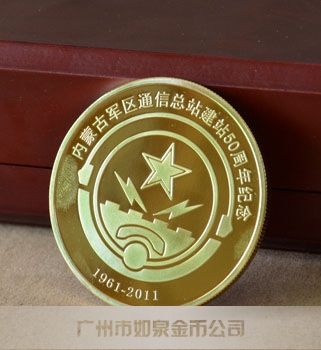 內(nèi)蒙古軍區(qū)通信總站建站50周年純金紀(jì)念章,紀(jì)念金章定做