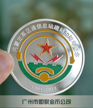 內蒙古軍區通信總站建站50周年純金紀念章,紀念銀章定做