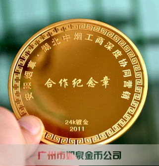 湖北中煙工業(yè)公司24K鍍金紀(jì)念章定做,鍍金紀(jì)念幣定做