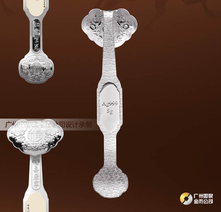 廣州市如泉金幣公司依托上海造幣廠和深圳國寶造幣廠等造幣公司以及金銀制品廠,設計定做紀念幣、紀念章、金銀幣、金銀章、金銀條,采用造幣工藝、選用千足金銀,個性定制金幣、定做銀幣、訂做金條、訂制銀條、制作紀念銀幣、制造紀念金幣、加工紀念銀章、生產紀念金章,純金純銀鑄造、全部國檢、權威檢測。