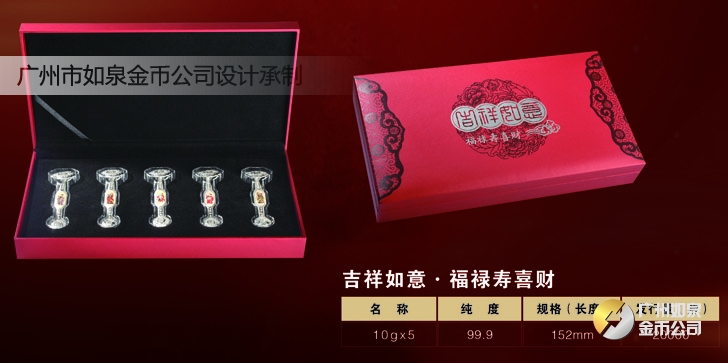 廣州市如泉金幣公司依托上海造幣廠和深圳國寶造幣廠等造幣公司以及金銀制品廠,設計定做紀念幣、紀念章、金銀幣、金銀章、金銀條,采用造幣工藝、選用千足金銀,個性定制金幣、定做銀幣、訂做金條、訂制銀條、制作紀念銀幣、制造紀念金幣、加工紀念銀章、生產紀念金章,純金純銀鑄造、全部國檢、權威檢測。