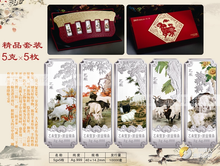 【Au.999純銀羊年賀歲銀條重量規格】 5克x5根、10克x5根、20克x5根盒裝、套裝