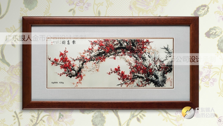 紅梅報(bào)春圖純銀銀畫(huà)批發(fā)零售個(gè)性定制純銀浮雕銀畫(huà)
