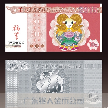 2015賀歲羊年純銀紀念鈔、銀鈔定制批發