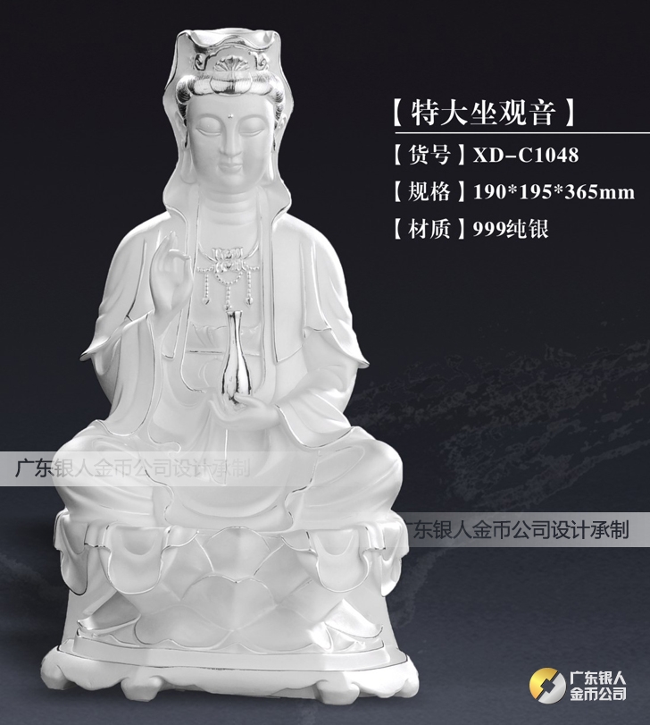 純銀觀音菩薩坐像工藝擺件