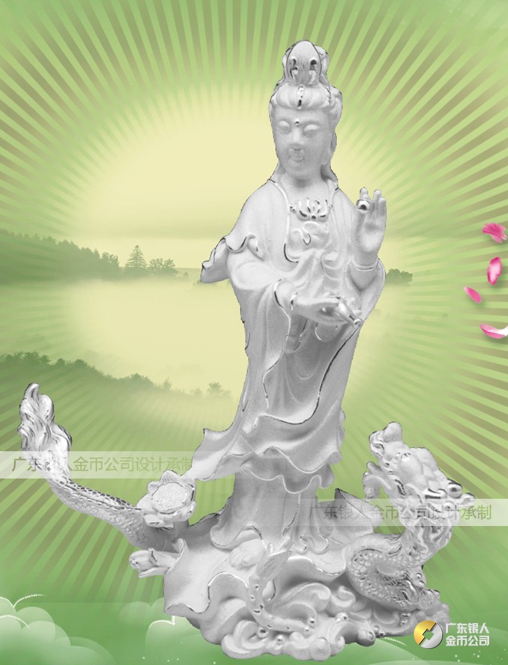 海上戲龍觀音純銀擺件、純銀觀音銀制品純銀工藝品擺件