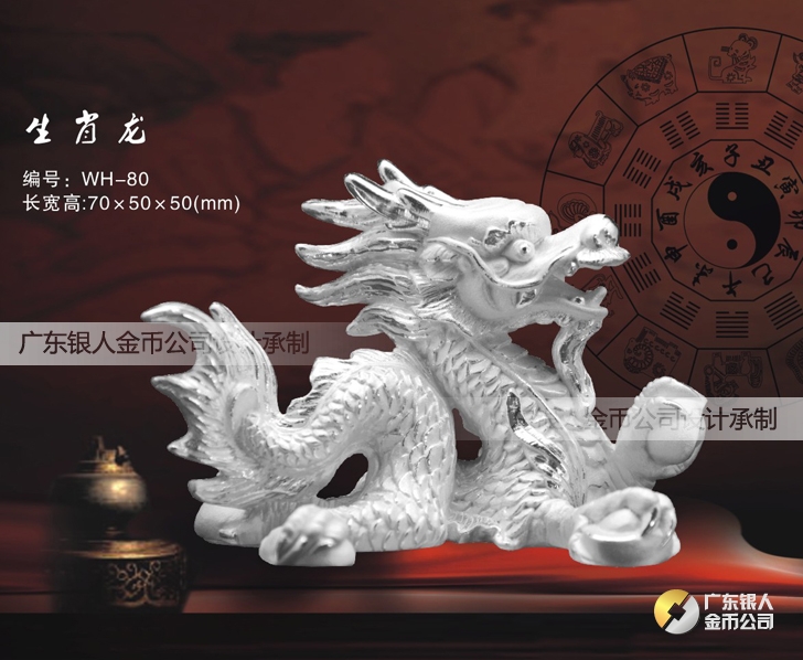 十二生肖龍純銀紀(jì)念品、屬龍生肖純銀擺件