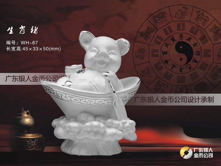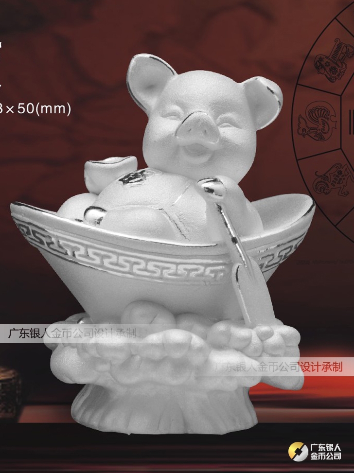 純銀生肖豬擺件、設計定做純銀工藝品擺件、純銀禮品定制