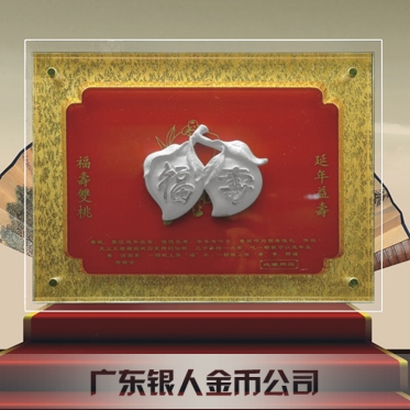 福壽雙桃純銀屏風擺件