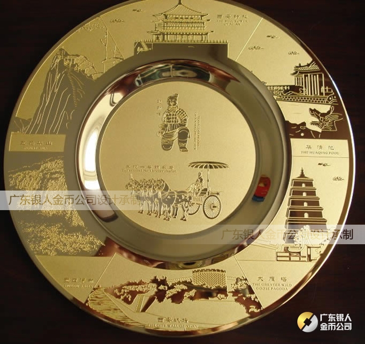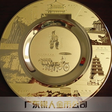 西安兵馬俑旅游景點禮品設計開發制造、風景區紀念品、知名景點紀念禮品制造、金銀盤訂做、鍍金盤定做、鍍金紀念盤定制、紀念獎盤制作、擺件圓盤訂制。